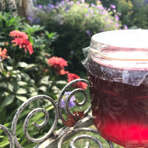 The lovely crop of damsons and plums from last week have now been turned into a couple of crumbles ( stored in the freezer!) and a rather stunning coloured jelly. I made a jelly rather than jam as Head Gardener loves the flavour but isn't too keen on the mushy fruit bit. So I thought as he had been a big part of raising the crop it would be the best thing to make!